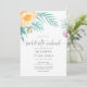 Mint, pink and yellow exotic floral bachelorette weekend itinerary invitations featuring peonies, eucalyptus, rosehips, succulent, lisianthus, menthol leaves and succulents