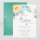 Tropical Mint Floral Watercolor Wedding Invitation