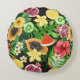 Tropical mix-fruit, flowers and leaves on black round cushion