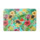 Tropical mix-fruit, flowers and leaves on blue bath mat