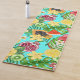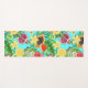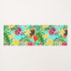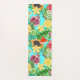 Tropical mix-fruit, flowers and leaves on blue yoga mat