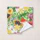 Tropical mix-fruit, flowers and leaves on white bath towel set