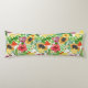 Tropical mix-fruit, flowers and leaves on white body cushion