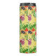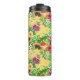 Tropical mix-fruit, flowers and leaves on yellow thermal tumbler