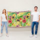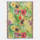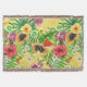 Tropical mix-fruit, flowers and leaves on yellow throw blanket