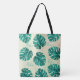 Big palm Hawaiian tropical leaves and aloha handwriting style script over a watercolor washed cream ivory background decorative summer tote bag for beach or shopping!