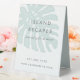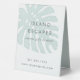 Bring a touch of coastal charm to your business display with this customisable tabletop tent sign by Redwood & Vine Design Co. Featuring a fresh mint green monstera leaf background and sleek typography, this durable plastic sign is designed to showcase your business name, slogan, and contact details on both sides for maximum visibility. Ideal for boutiques, vacation rentals, and coastal gift shops, it offers a professional yet stylish way to highlight your brand. Perfect for checkout counters, event tables, or retail displays, this versatile sign blends tropical design with polished presentation.