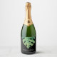 Tropical Monstera Leaf on Black Wedding Sparkling Wine Label