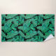 This beautiful beach towel features watercolour hand painted monstera and other tropical leaves in a nice green colour over a black background.