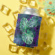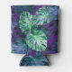 Colourful watercolor tropical tracery monstera leaves on a royal purple background.