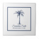 Add your own special touch to this simply elegant design featuring your family name or phrase, established date and palm tree in navy blue, framed in a navy blue border over a white background.