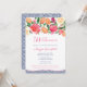 Celebrate this milestone birthday with this feminine and striking invitation design featuring vibrant pink watercolor flowers and bold citrus fruit details , complemented by dark blue and white tile pattern on the base of the front invitation, and on the reverse.
