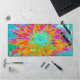 This Cool Floral Desk Mat features an Orange and Hot Pink Decorative Dahlia Flower with Teal Blue, Magenta, Turquoise, Lime Green, Chartreuse and Aquamarine Accents. The result is a Colourful, Abstract, Stunning Dahlia Floral painting that you will love!