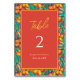 Tropical Orange and Yellow Floral Wedding Table Number