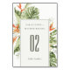 Tropical Orange Green Leafy Botanical Wedding Table Number