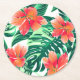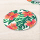 Tropical orange hibiscus round paper coaster