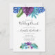 Colourful watercolor tropical leaves and orchids wedding brunch invitation turquoise blue watercolor wash reverse.