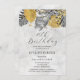 Elegant and chic tropical palm bridal shower invitation features a top arrangement of black line drawn palm leaves and gold textured foliage. The birthday heading is written in a modern and open script. A soft and romantic grey watercolor wash pulls the design together on the front and back. Very easy to customise. This item is part of the Elegant Tropical Palm collection. The timeless aesthetic makes this appropriate for any time of the year.