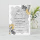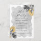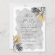 Elegant and chic tropical palm bridal brunch invitation features sophisticated arrangements of black line drawn palm leaves and gold textured foliage surrounding a modern watercolor frame. Hen Party is written in a modern and open script. A soft and romantic gray watercolor wash pulls the design together on the front and back. Very easy to customize. This item is part of the Elegant Tropical Palm collection. The timeless aesthetic makes this appropriate for any time of the year.