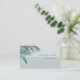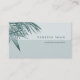 Chic tropical business cards feature a colorblock stripe background in icy greyed aqua with a cluster of jasper green palm tree leaves blooming from the corner. Personalise with your name and business name, title or occupation. Add your full contact details to the back in a chic mix of modern sans serif and italic lettering, adorned with a smaller palm frond on the upper right. A unique choice for travel agents, vacation property managers, or any business in a tropical or island setting.