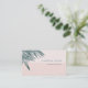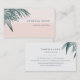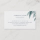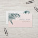 Chic tropical business cards feature a colorblock stripe background in icy greyed aqua with a cluster of jasper green palm tree leaves blooming from the corner. Personalise with your name and business name, title or occupation. Add your full contact details to the back in a chic mix of modern sans serif and italic lettering, adorned with a smaller palm frond on the upper right. A unique choice for travel agents, vacation property managers, or any business in a tropical or island setting.