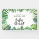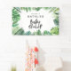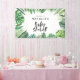 Modern tropical palm leaf watercolor foliage baby shower party banner. Hand painted effect script text. Part of a on trend summer collection. Background colour can be changed.