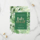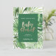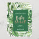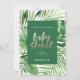 Modern tropical palm leaf watercolor foliage baby shower invitations. Hand painted effect script text. Part of a on trend summer collection. Background colour can be changed.