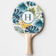 Tropical palm leaves gold pineapple blue monogram ping pong paddle