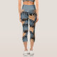 Tropical Palm Leaves Grey Foliage Yoga Exercise Capri Leggings