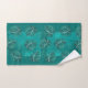 Teal palm leaves tropical Hawaiian pattern with aloha script over a vibrant ocean green background making a trendy chic elegant sumer bath towel set.