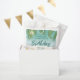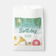 Make party favors extra fun with this cheerful summer-themed favor bag designed by Destei. Teal ocean waves touch the sandy shore while tropical palm leaves and a peek of sun brighten the scene. On the sand, a yellow striped beach umbrella, pink swim ring and black sunglasses bring playful summer vibes. Perfect for holding treats, goodies or small gifts, this favor bag adds a sunny touch to any birthday celebration.
