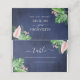 Tropical Green Palm Leaves and Blush Pink Flowers Watercolor with Faux Rose Gold Foil Geometric shape and Navy Blue Background Spring or Summer Wedding Place Cards - includes beautiful and elegant script typography with modern tropical botanical flowers and greenery for the special Wedding day celebration.