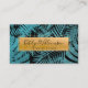 Present your best self to your clients, with Hawaiian tropical flair, whenever you use these chic, striking, stylish, modern, custom name business cards. Crisp, black handwritten script typography on a faux gold foil rectangle overlays a graphic, elegant, tropical palm leaf pattern of dusty teal blue gradations on black. Personalise with your full name and business on the front. Fill in the faux gold foil back side with your phone numbers, address, email, website, and social media accounts. Makes a chic, professional, and stylish statement wherever you go.