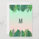 Elegant, chic, and modern tropical beach faux printed gold border and green palm tree fronds and banana leaves on pink and mint green gradient ombre with faux printed gold foil typography summer engagement party invitations. This classic and sophisticated design is perfect for the classy, trendy, and stylish marrying couple. Personalise with your own message on the front and a customised monogram on the back. All photo print design.