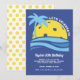 A fun invitation for your next pickleball party. Design features a pickleball sun, palm tree, ocean waves against a blue background and your custom party details. The backside features a pattern of pickleballs. Great for an adult or kid's pickleball birthday party, pickleball club special event, pickleball weekend gathering, getaway or everyday fun play. Perfect for those who live or play pickleball near the ocean or beach. Pickleball - the best sport ever!!