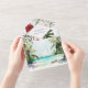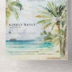Features exotic watercolor greenery and flowers against a soft ocean background.