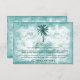 The design features a tropical teal green palm tree on a turquoise and white textured effect background with color coordinated editable wording.