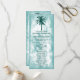 The design features a tropical teal green palm tree on a turquoise and white textured effect background with color coordinated editable wording.