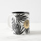 Tropical Palm Tree Black White Gold Monogram Two-Tone Coffee Mug