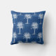 Tropical Palm Tree Blue White Pattern Throw Pillow