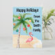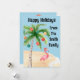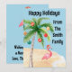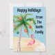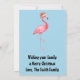 Decorated Christmas Palm Tree and a flamingo in a Santa hat on Christmas card. Personalise with your name and greeting.