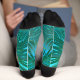 Tropical Palm Tree fresh Leaves on black background Pattern Watercolor Trendy Design for Clothing & Shoes > Women > Clothing > Underwear & Socks > Socks Jungle Floral Exotic Colourful Leaf Foliage pattern, Wood, Fresh Palm Leaf decorative ornament. (Hello Summer, Tropical Sea Beach, Jungle Exotic Decoration, Family Day, Weekend, Wedding Day, Birthday, Anniversary, Travel, Weekend, Voyage) Green and sky blue colour, Carnival art contemporary concept gifts for her