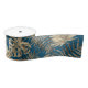 Tropical Palm Tree Leaves Pattern Teal Blue Gold Satin Ribbon