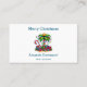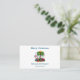 Business cards with a seasonal holiday image. A tropical palm tree decorated in festive lights with a star on top. A giant red and white candy cane sticking out of the sand. Christmas presents under the tree. Whimsical and fun.