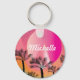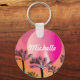 Tropical Palm Tree Neon Pink Pattern Name Key Ring