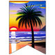 Vintage colours orange, blue and purple tropical paradise themed party, AI generated artwork depicting palm trees, the ocean and sunsets. Cute for birthday, engagement or anniversary parties.