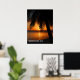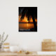 Belise Poster. Beautiful tropical palm trees on the beach at Southwater Caye, Belise. A warm orange sunset replects in the ocean behind