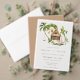 This wedding envelope is a tropical jungle design with the colours of nature. It features palm trees, luscious rainforests, and bungalows nestled within a beautiful tropical paradise setting.