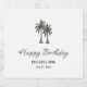 Tropical 30th birthday party beverage label, with a palm trees illustration and a script design. With customizable lettering, you add your own information. An elegant way to add the beach to that special birthday celebration.