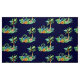 Tropical Palm Trees and Floral on Navy - features exotic floral elements and tropical greenery of bird of paradise, plumeria, and pineapples, in shades pink, yellow, green, and orange.